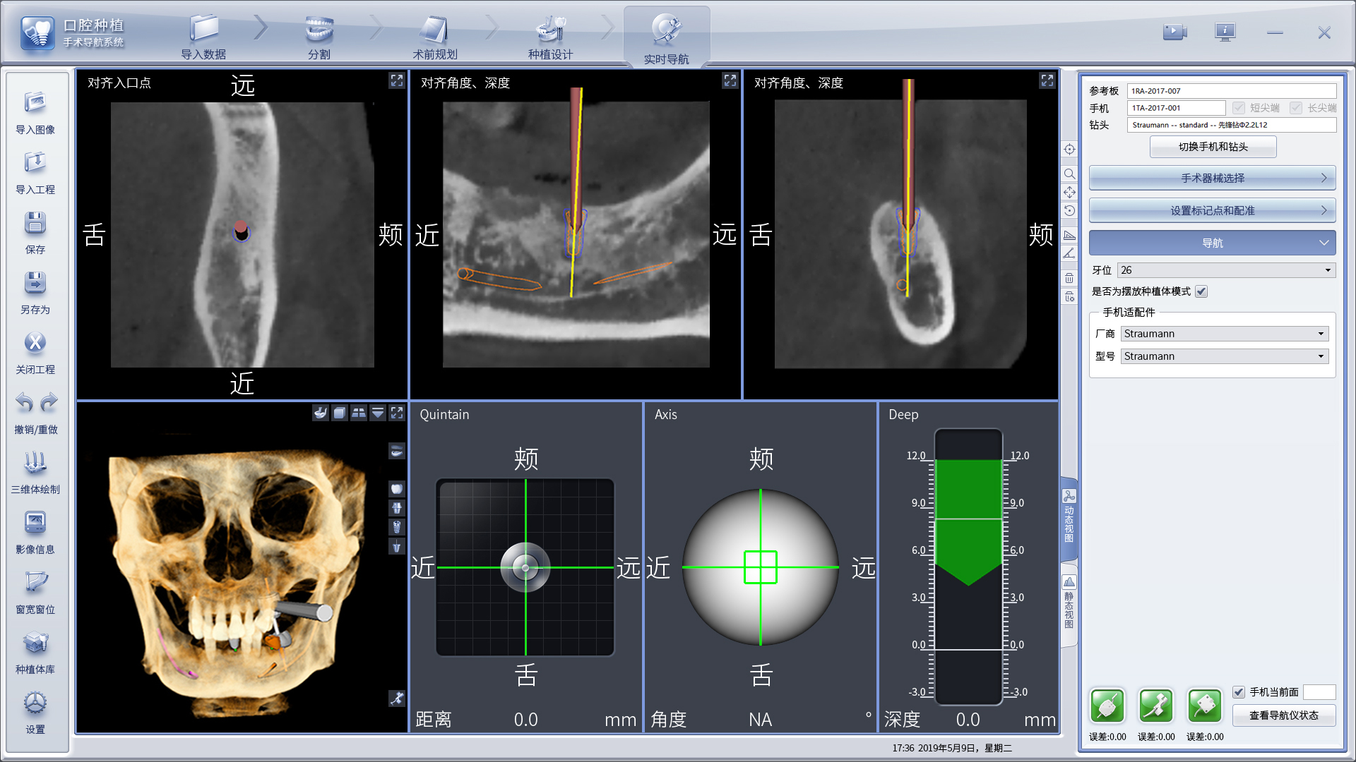 3、 常規(guī)的術(shù)前準備過程中加入導(dǎo)航的標定和配準環(huán)節(jié),將患者的口內(nèi)信息與導(dǎo)航軟件進行匹配,保證實時追蹤;