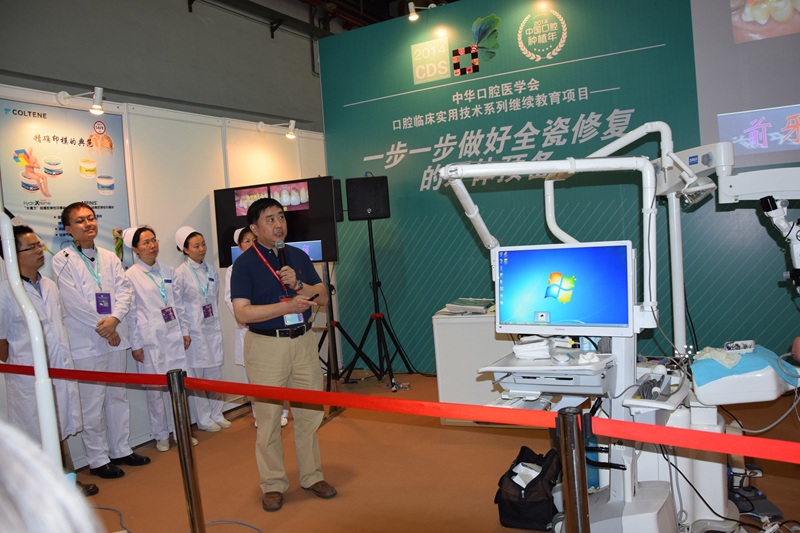 北京大學口腔醫(yī)學院譚建國教授主持的“一步一步做好全瓷修復的牙體預備”課程的現(xiàn)場教學演示環(huán)節(jié)也應用了我們公司研制的齒科實時訓練及評估系統(tǒng)。我們的系統(tǒng)與醫(yī)生的操作完美配合,畫面清晰地還原了醫(yī)生的每一步操作,真正做到實時精確。