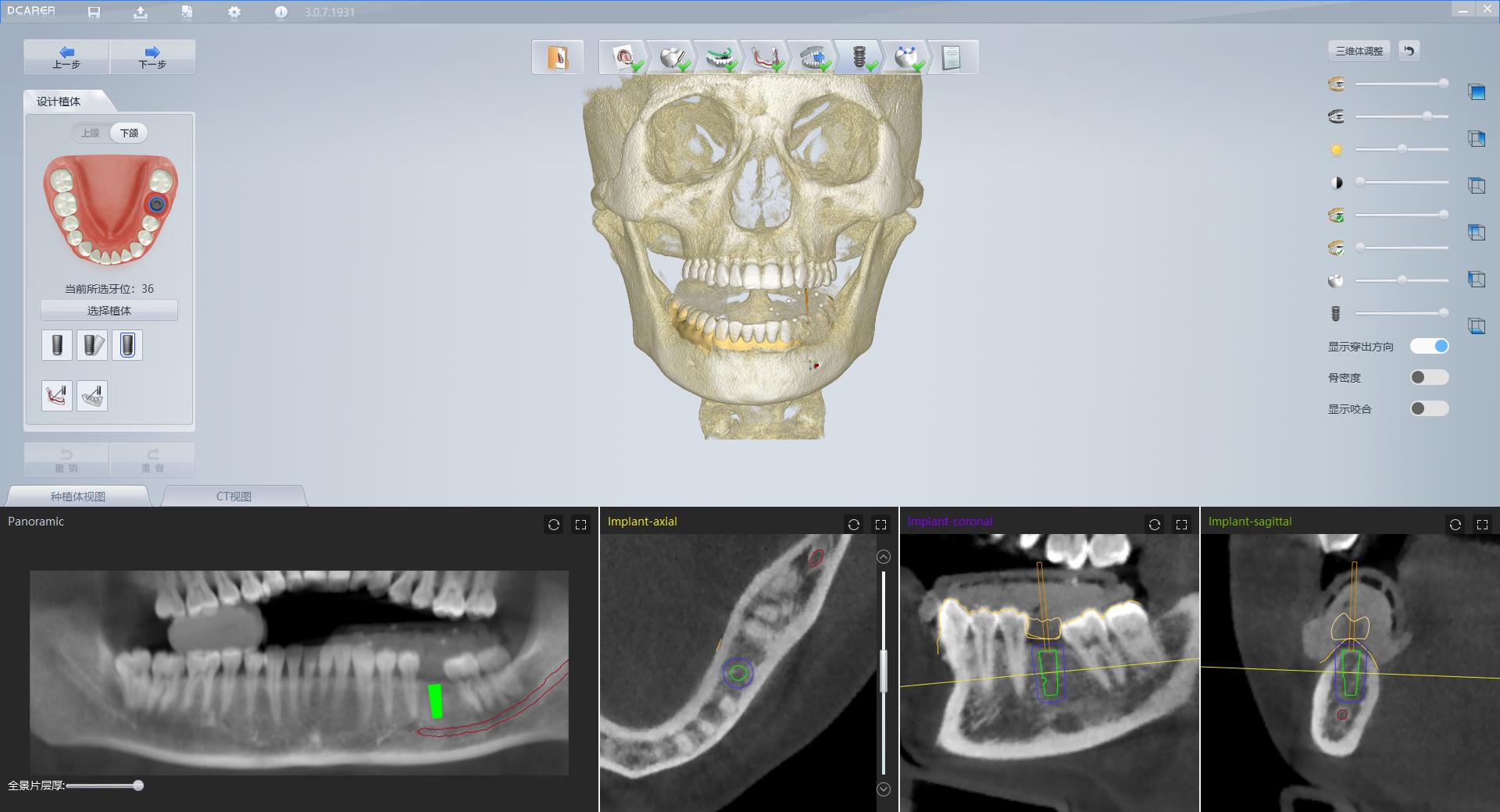 支持聯(lián)網(wǎng)功能,CT和口掃數(shù)據(jù)自動擬合,根據(jù)導(dǎo)入的CT自動繪制全景線及下頜神經(jīng)管,節(jié)省醫(yī)生的設(shè)計時間,提高種植方案精準(zhǔn)度,降低手術(shù)風(fēng)險;